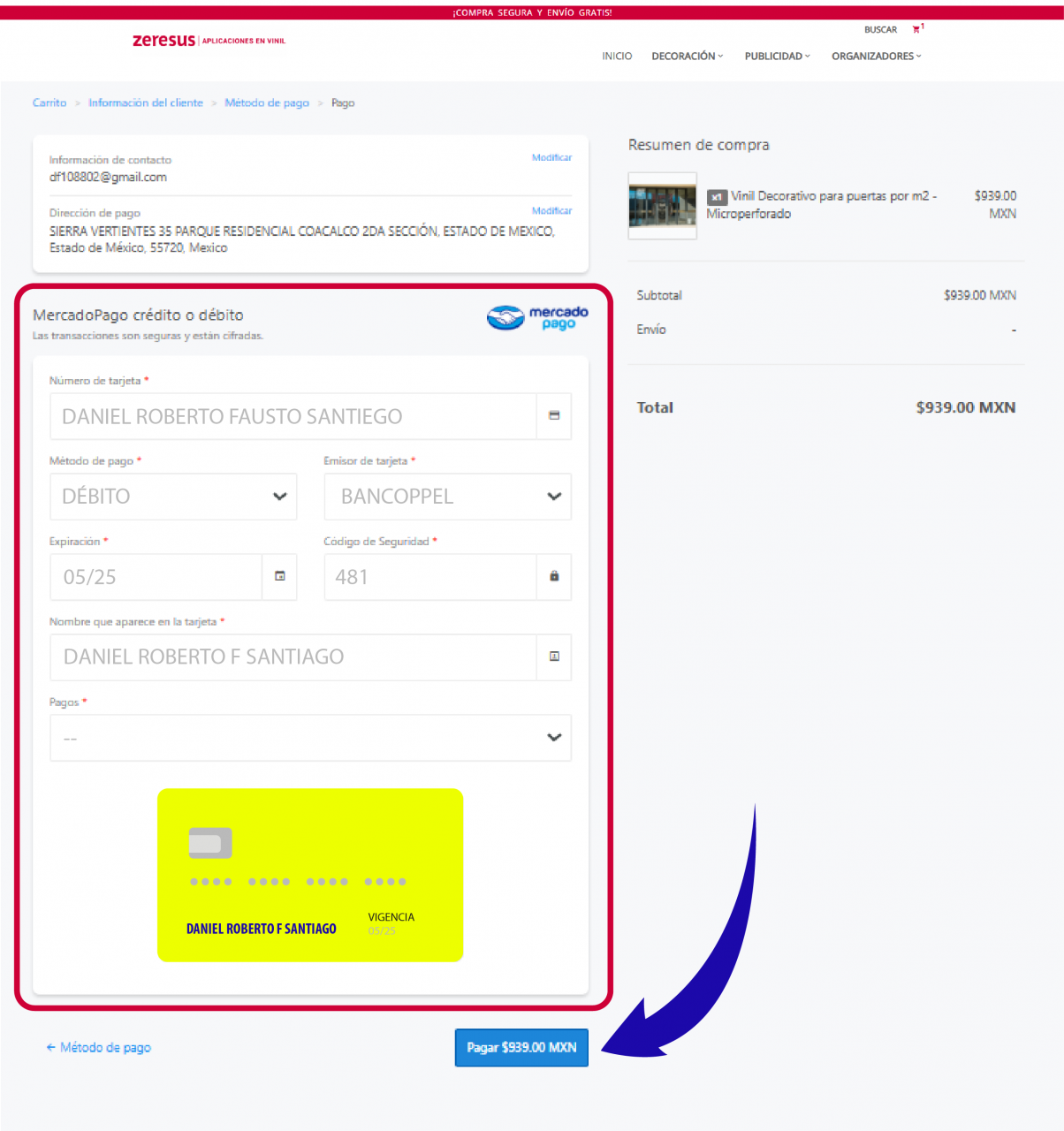 6. Ya que hayas puesto tus datos de contacto procede a elegir tu método de pago favorito y da click en "Continuar a pagar"
